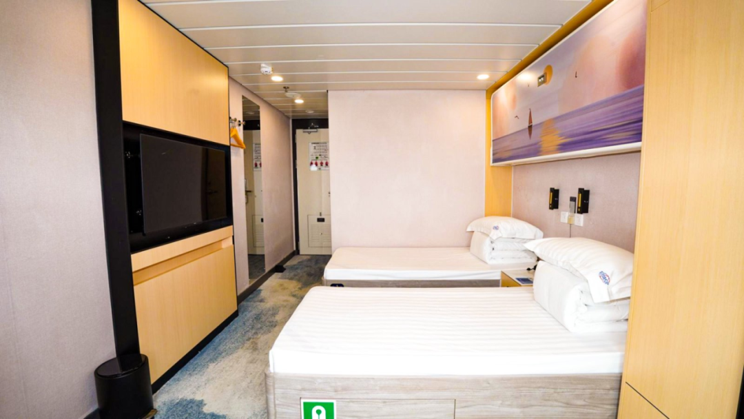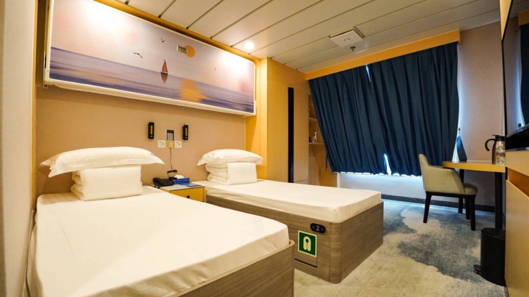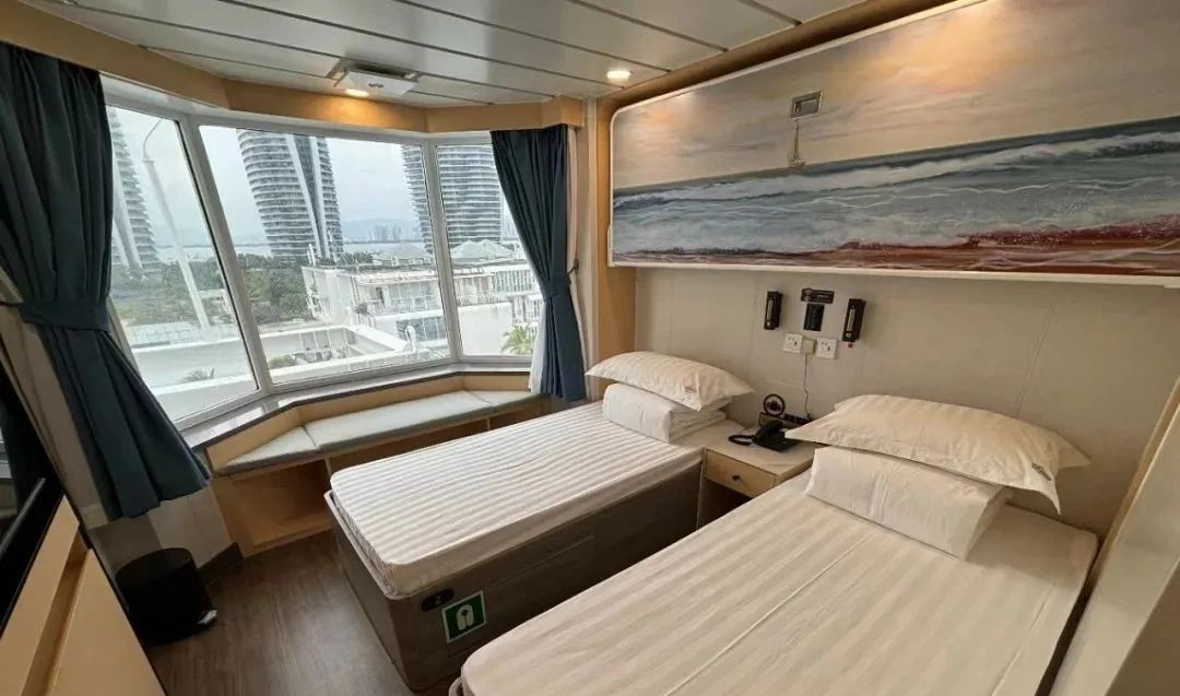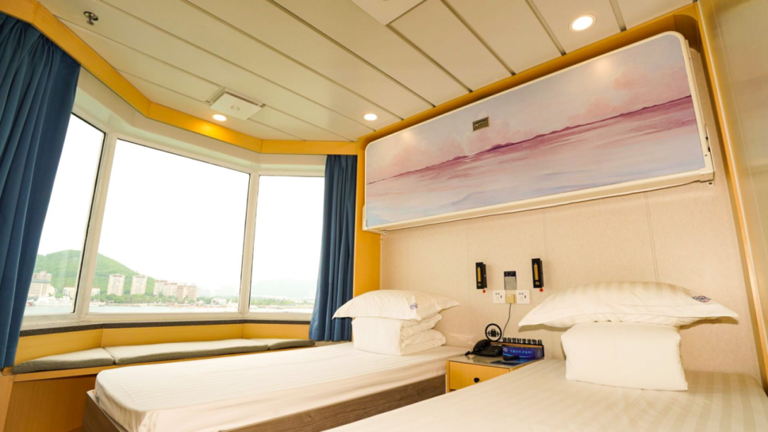 ▲ 房间设施:1.9X0.9米床| 海景窗|独卫| 床头柜| 行李架(加铺床1.9X0.85米)(位于8-9层)