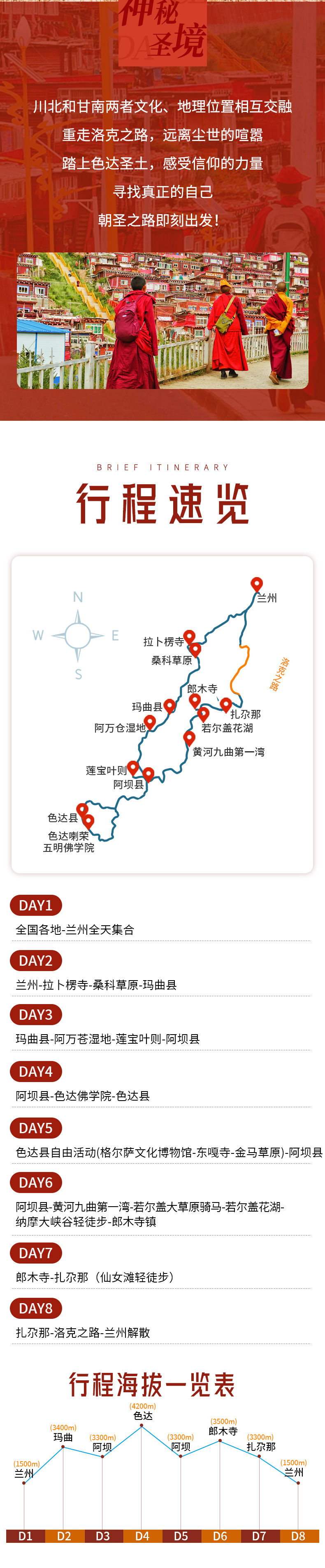 兰州-拉卜楞寺(240km,车程约4h)-桑科草原-玛曲县(200km,车程约3h)