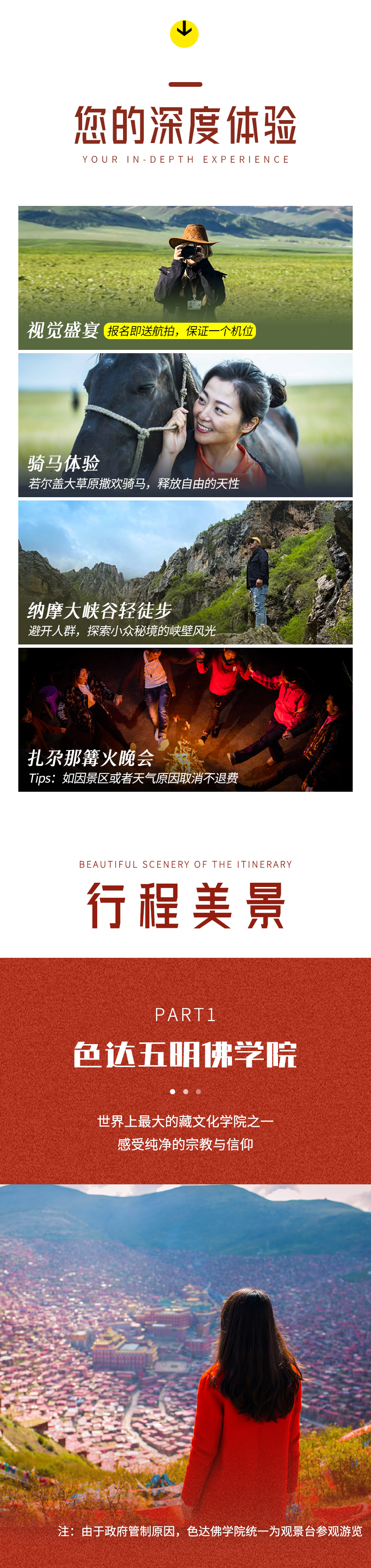 2、色达佛学院非开发景区,为避免影响学院内学员清修,禁止进入学院学校及学员生活区;所有进沟人员都为统一的山顶观景台区域游览,望悉知。