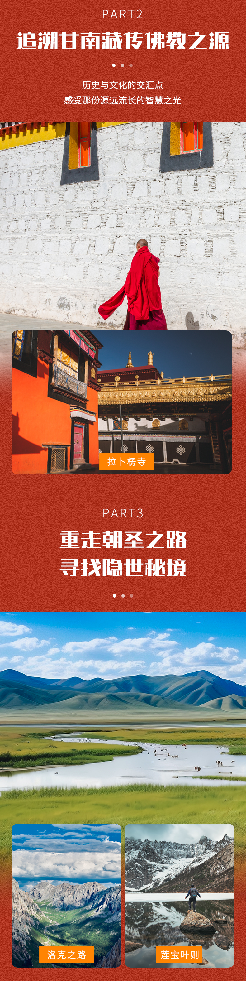 18 : 00随后抵达郎木寺镇,我们先前往【格尔底寺】,位于四川和甘肃交接的郎木寺镇,是中外驰名的背包客圣地;这里也是之前进藏的必经之地,各族文化在这里融合交汇。随后前往【纳摩大峡谷】,它隐藏在郎木寺的后山里,两侧山坡上被红色、黄色、绿色的植被覆盖,宛若世外桃源,据说最深处藏着白龙江的源头,,感兴趣的小伙伴可以去多多了解一下哦~