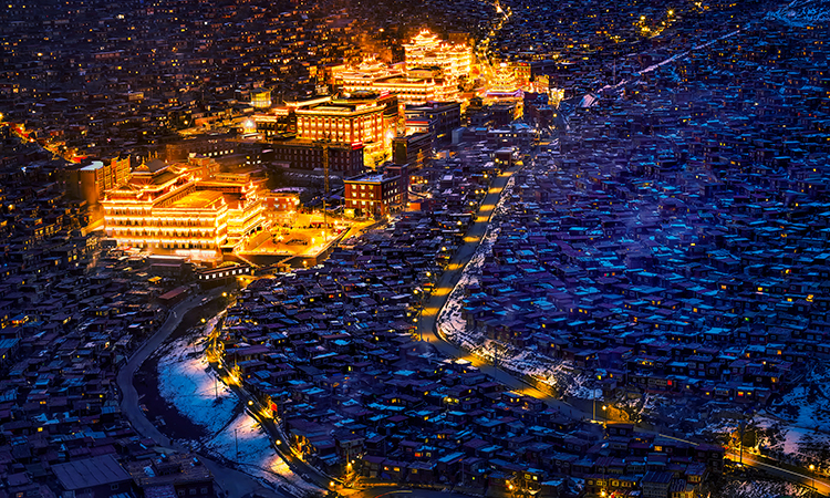 19:00欣赏完毕后适时离开色达佛学院,返回色达县城办理入住。