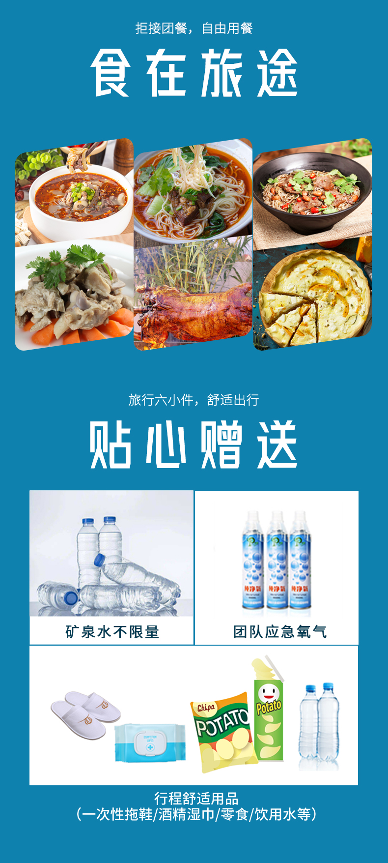 4、保险:每人赠送50万元保额旅行社责任险、34万元旅游意外险