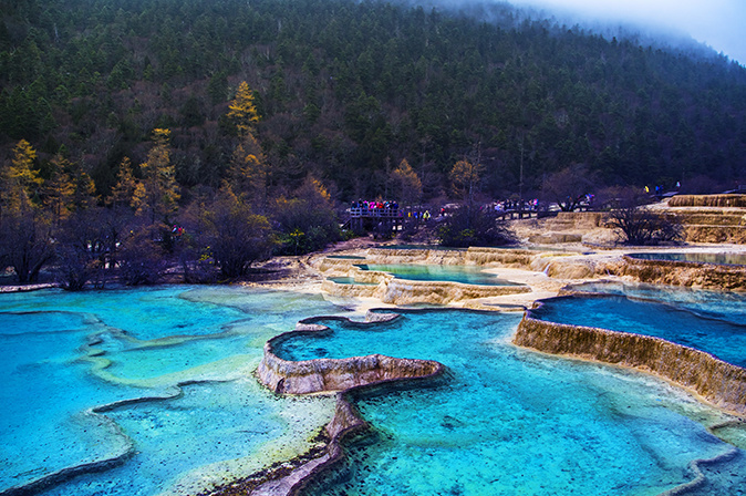 2、黄龙景区建议玩法是乘坐索道上,(80元需自理),之后一路徒步下来欣赏景观。