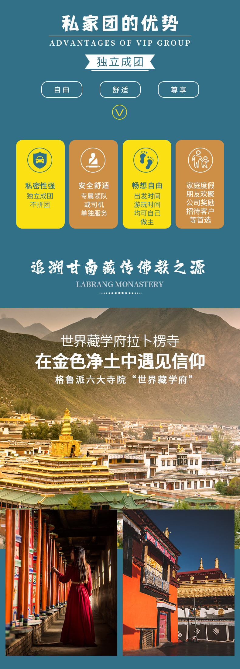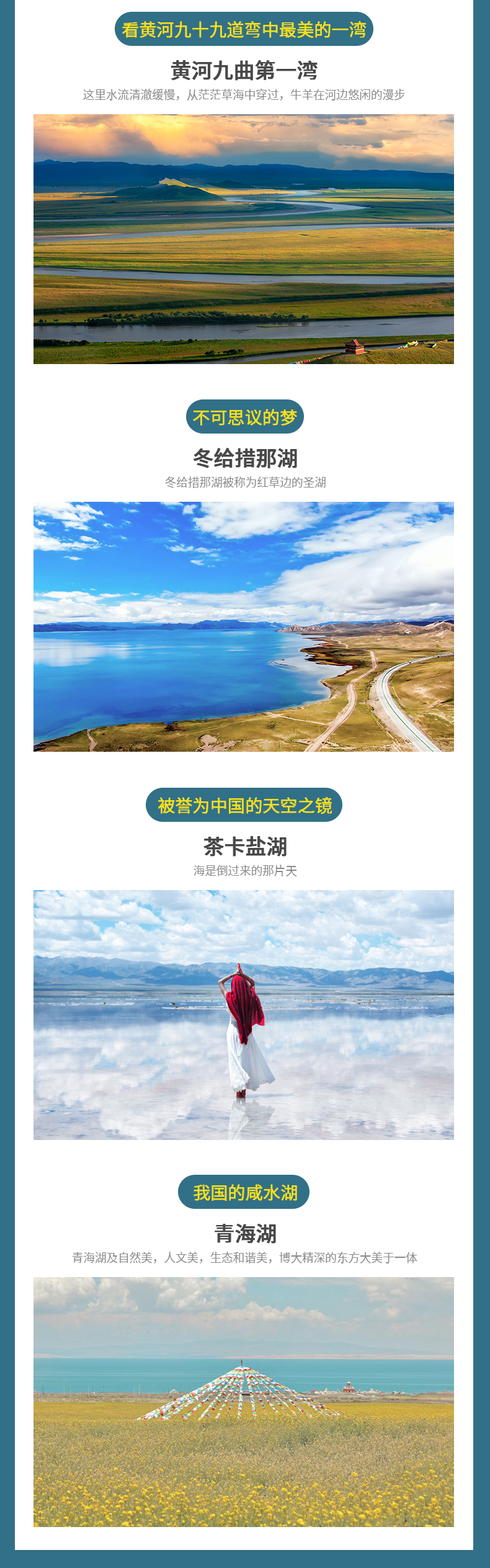 4.门票:拉卜楞寺、纳摩大峡谷、扎尕那、黄河九曲第一湾、莲宝叶则、茶卡盐湖、青海湖二郎剑景区、青海湖下午茶。