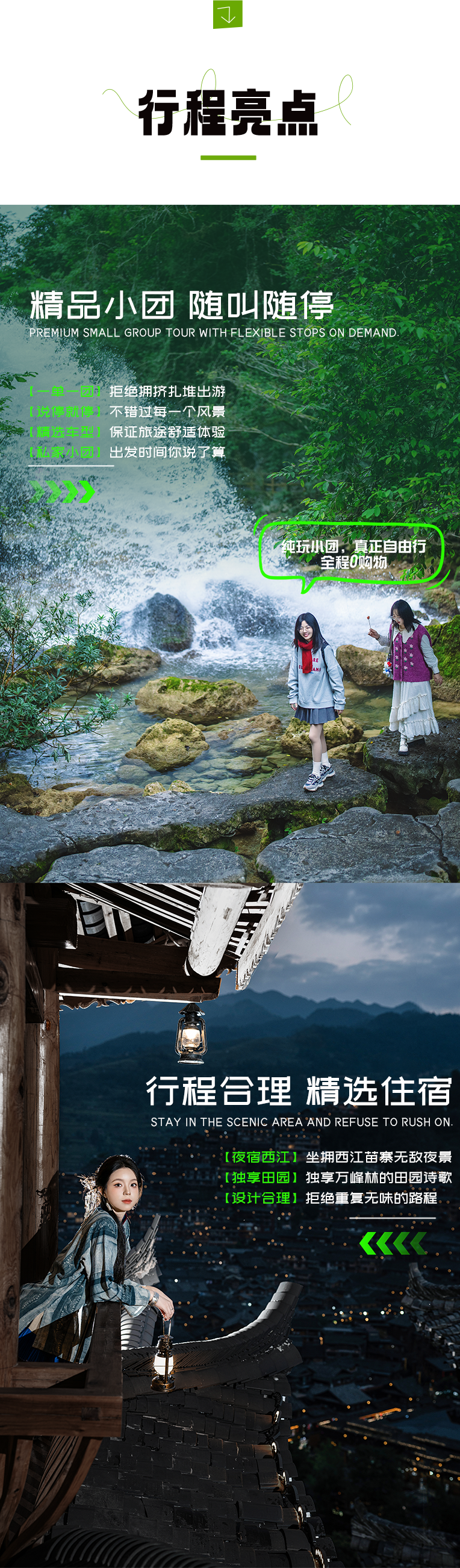 ② 西江千户苗寨内的客栈民宿均在山上或山半腰,我们需要爬山才能到达,建议大家今天只带当天的换洗衣物进去,其他行李放在大巴车上。