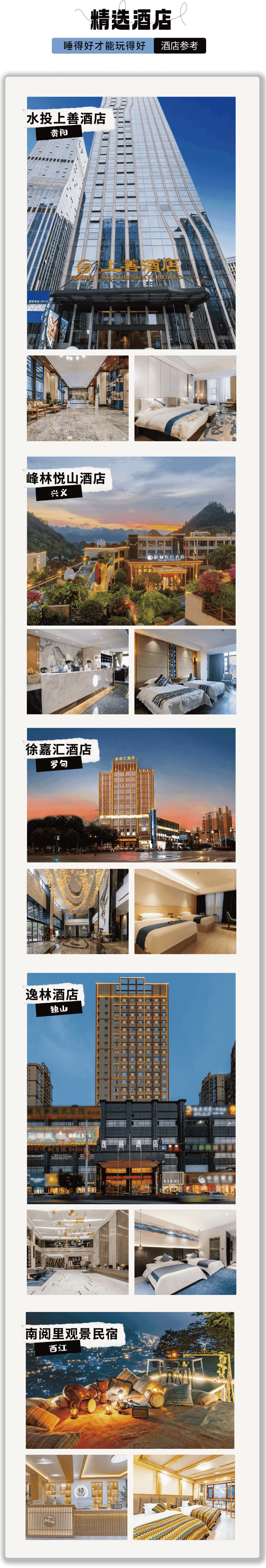 兴义:峰林悦山酒店、品度假酒店、富康国际酒店或其他同级酒店