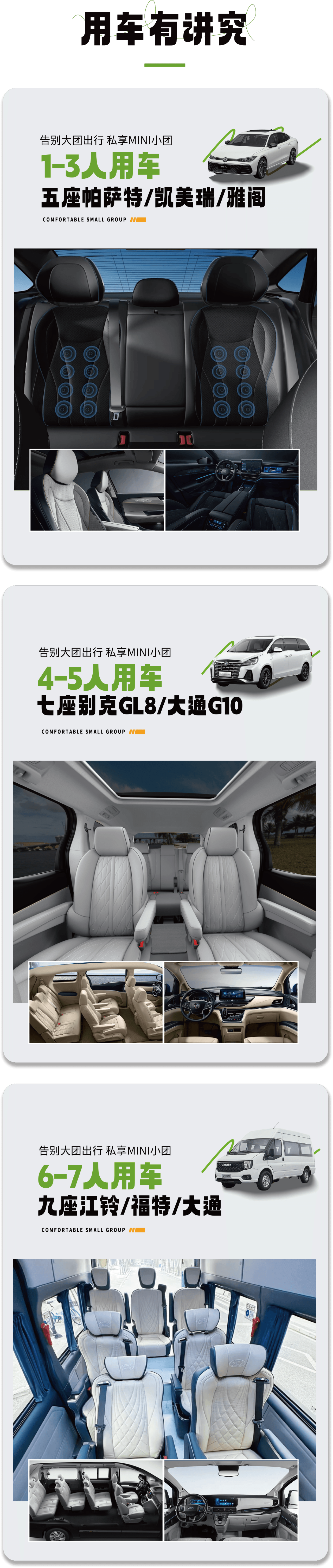 用车:根据人数适配5-9座车