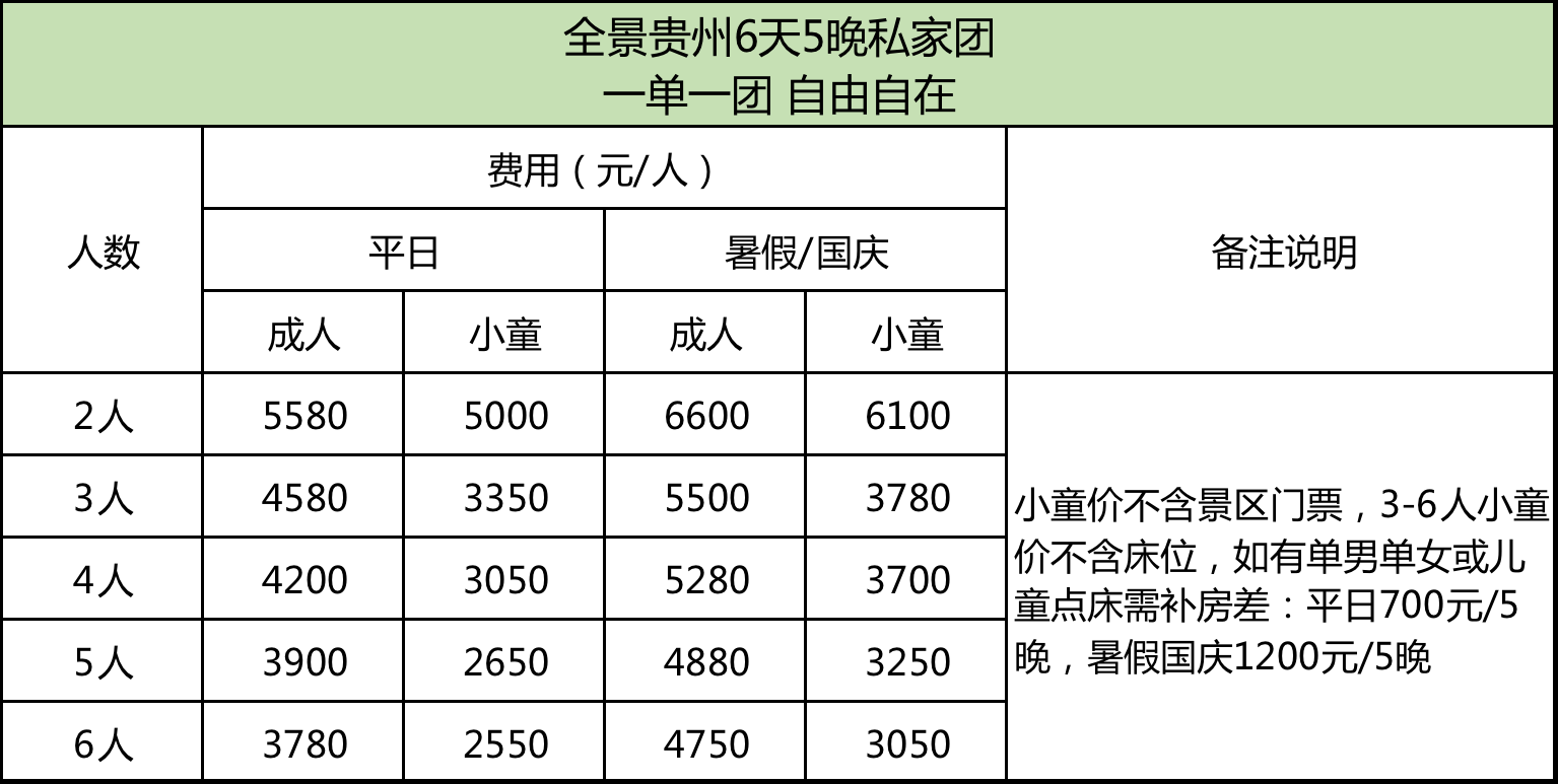 ➃ 其他:费用包含所未提及的任何形式消费(如:黄果树景区扶梯索道、小七孔鸳鸯湖划船、西江苗寨商业演出、中国天眼静默区内的景交车等可自由选择消费项目)