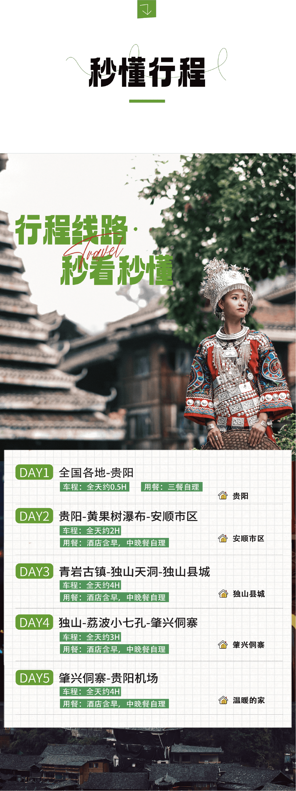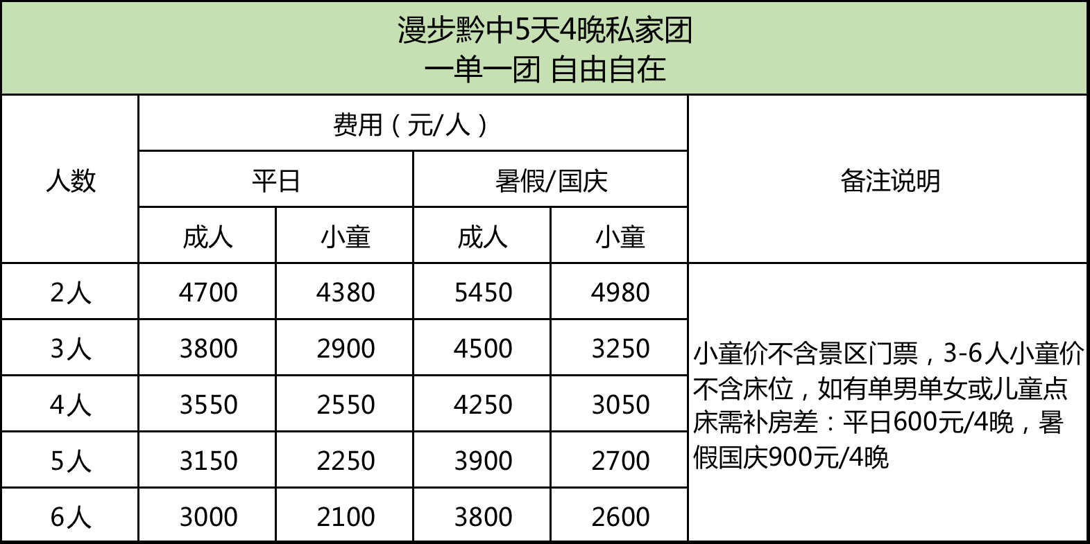 ➃ 其他:费用包含所未提及的任何形式消费(如:黄果树景区扶梯索道、小七孔鸳鸯湖划船、肇兴侗寨商业演出等可自由选择消费项目)