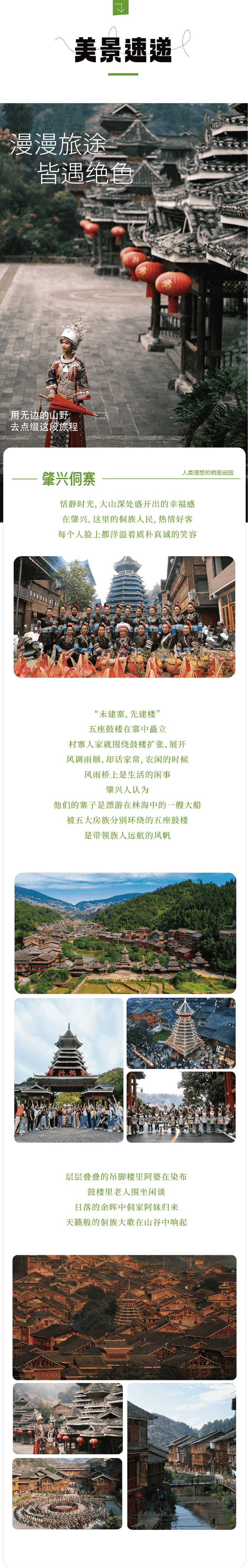 早餐后自由游玩肇兴侗寨,顺着穿寨而过的河水走进侗家的吊脚楼里,看那耸立的攒尖鼓楼,瞧一瞧花桥上的彩色绘图,与花桥上休息的老人聊聊天。随后下午乘车前往从江站或贵阳机场,