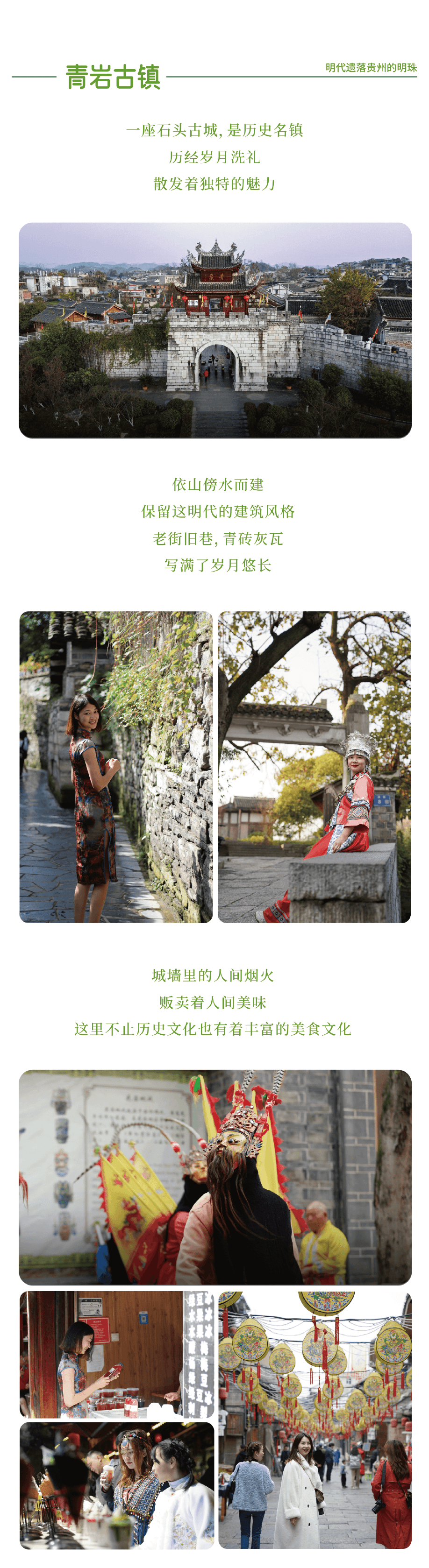 早餐后乘车前往青岩古镇,美食大发现和唯美的旅拍在这里均可得到尽情的舒展;如果体力允许,还可以登上山顶的城墙,将整个古镇的全景尽收眼底。