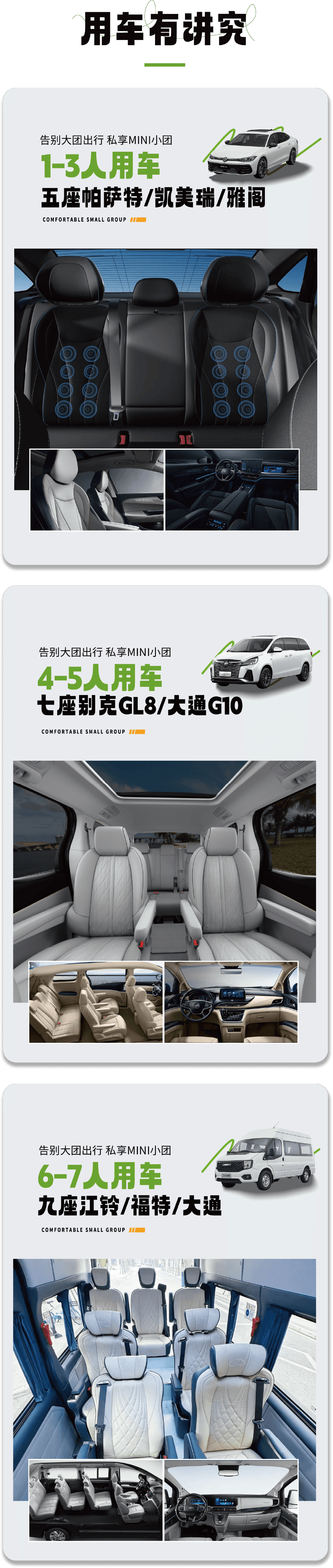 用车:根据人数适配5-9座车