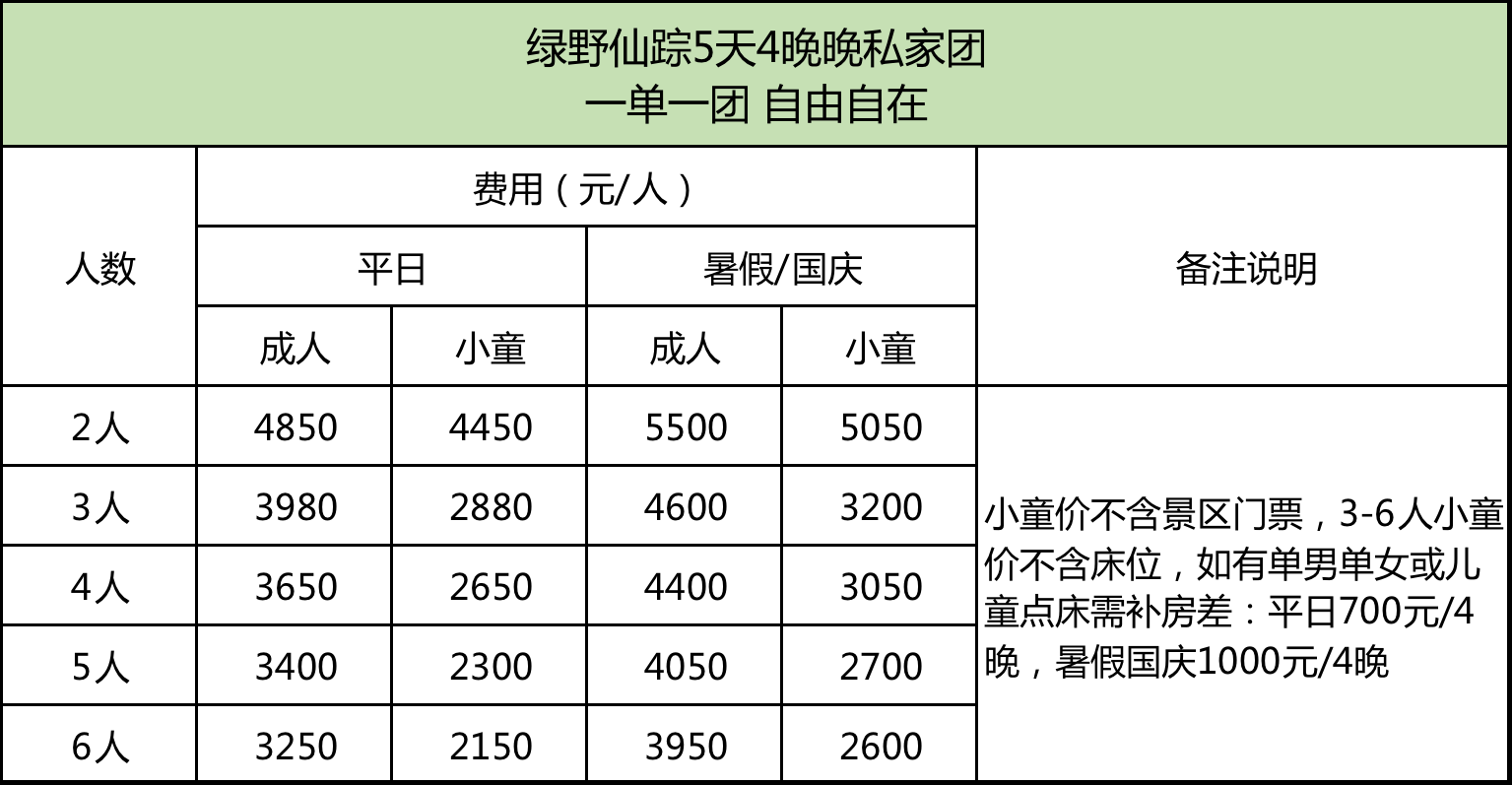 本活动为独立小包团行程,一单一团,我们将根据您的时间安排出行时间及标准