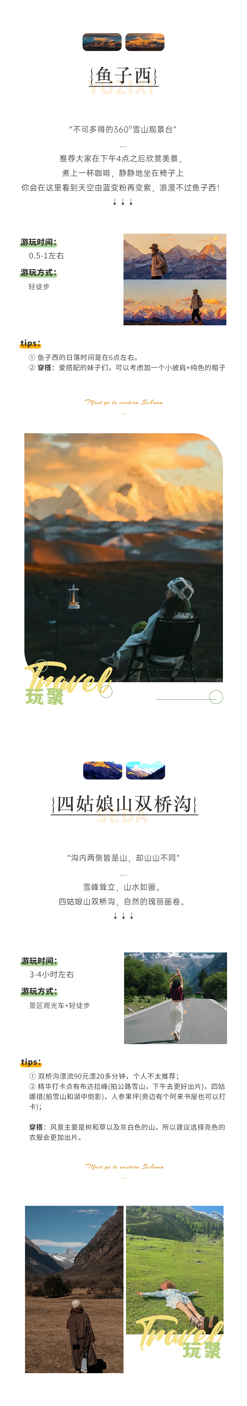 因四姑娘山(双桥沟景区)节假日期间景区门票有限流要求,为保障游客顺利游玩四姑娘山景区,所以如遇限流等问题,会安排长坪沟或海子沟游玩,不留遗憾。