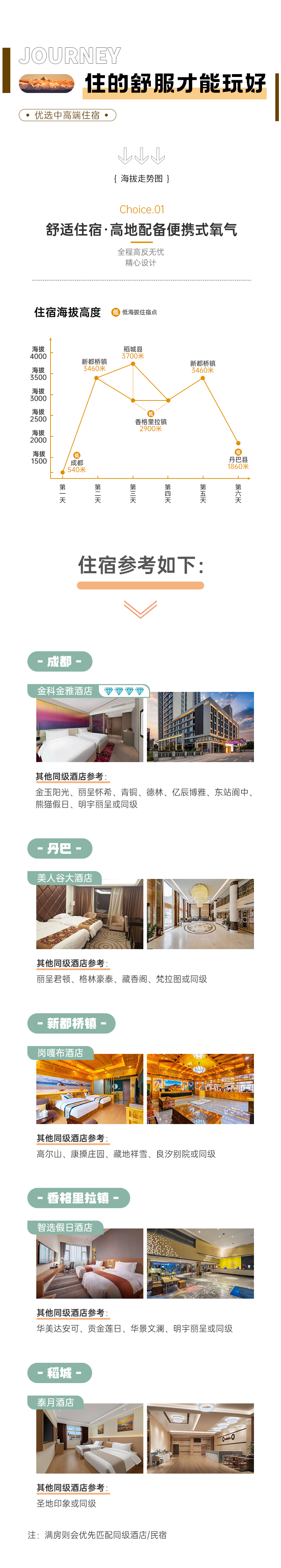 全程6晚住宿(含成都集合日4钻酒店1晚、不住不退不换不指定)具体了解团期价格。
