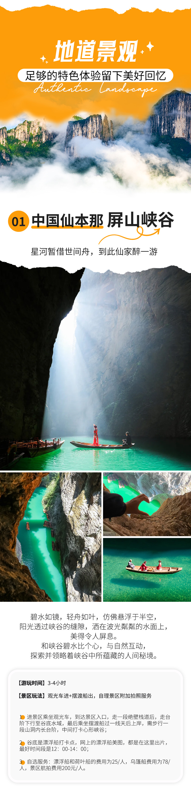 屏山峡谷被誉为中国的“仙本那”。它形成于第四纪冰川时期,自然风光集奇、秀、险于一体。