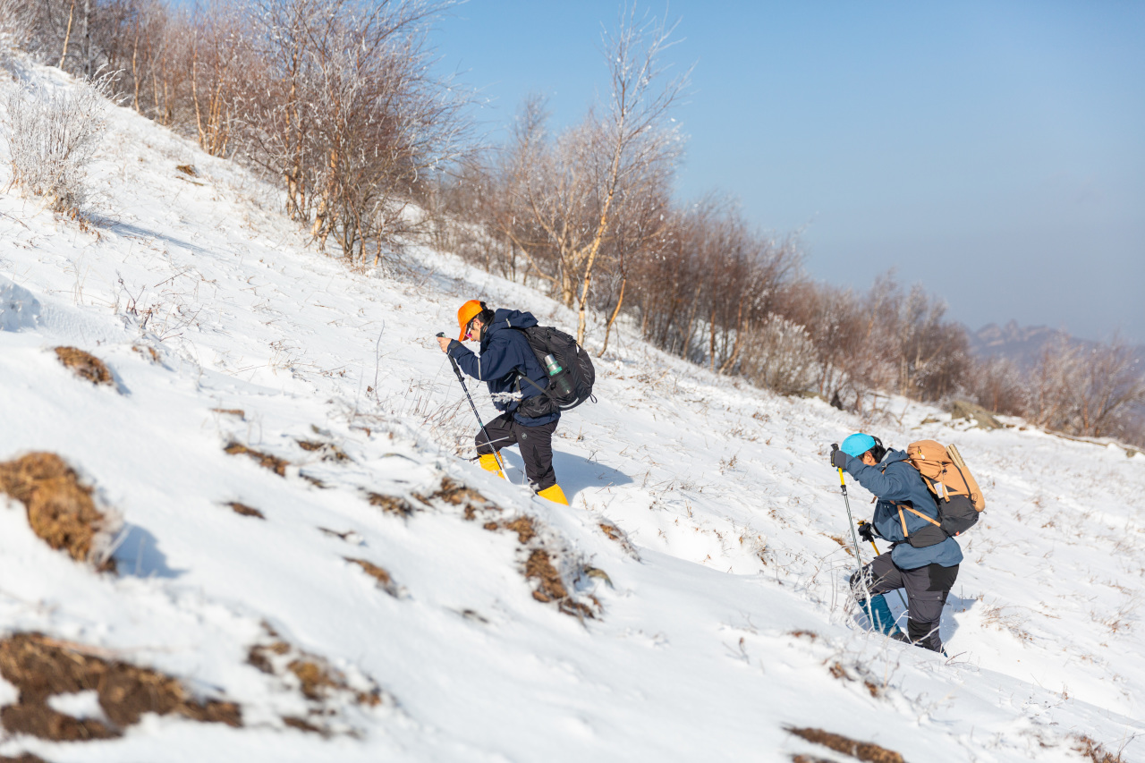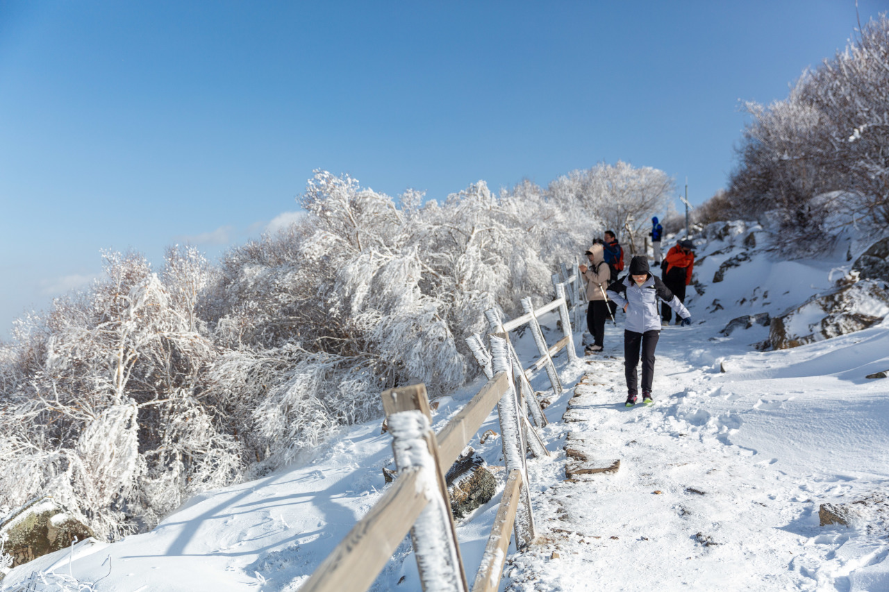 在风和日丽之时,仅为初级难度的线路;但是东灵山上天气变幻莫测,如果遇到了大风雪天气,则会晋升为大强度路线!冬季的东灵山,宛如一个被冰雪封印的童话世界,每一步都像是踏入了梦幻之境,美得让人窒息!