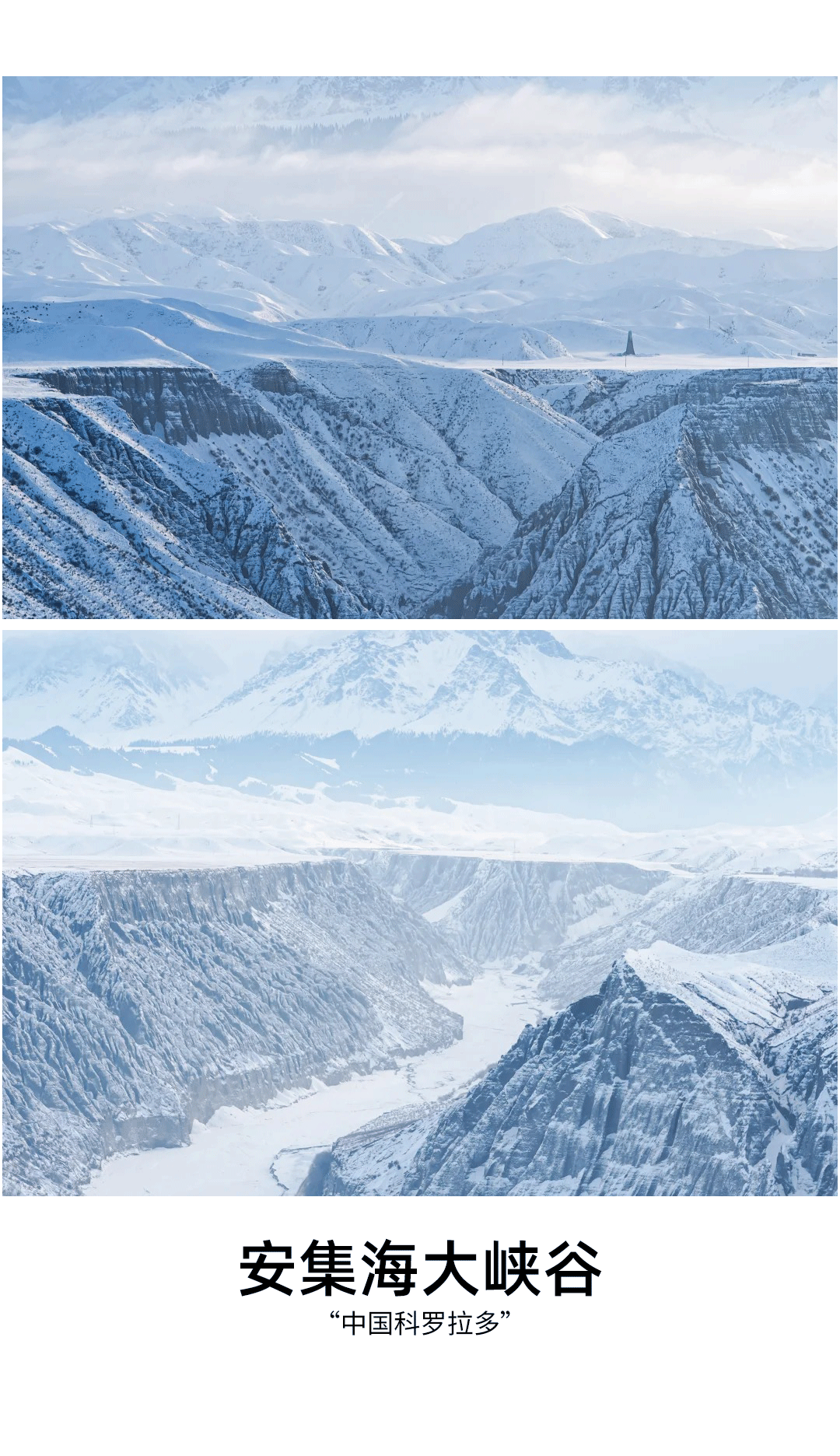 早起后前往安集海,冬季的新疆安集海大峡谷,白雪皑皑与沧桑地貌两相辉映,这是千万年来天山雪水冲刷形成的旷世杰作,不同颜色的岩层冲刷溶解形成一幅绚丽多彩的大地抽象画景观。戳视频一起感受这震撼之美!