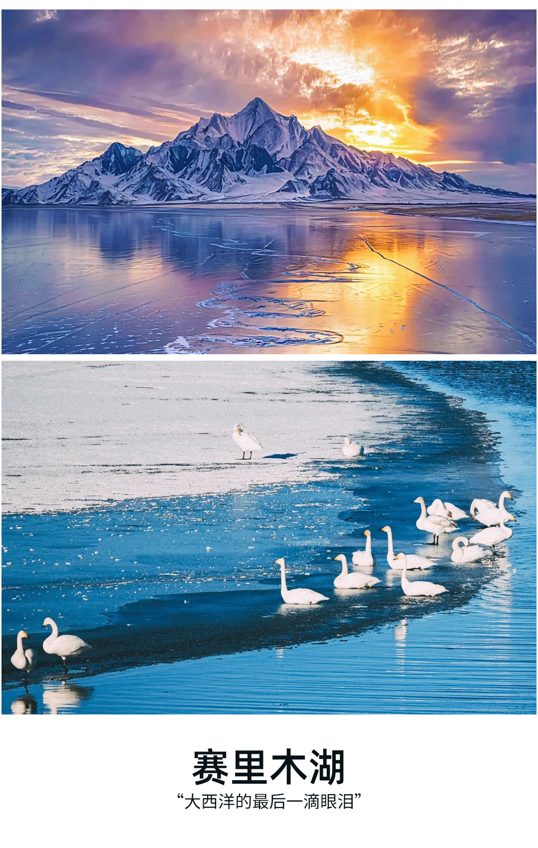 早晨起床后,我们乘车前往【赛里木湖】,一路驱车,抵达赛里木湖欣赏赛湖日落。赛湖静谧的湖面倒映着蓝天白云和雪山,犹如冬日的“天空之镜”。环湖四周都能看到这一绝美风景。傍晚,落日和晚霞倒映在湖面上,也像是开启了“镜像”特效,比平时多了一份绝美!