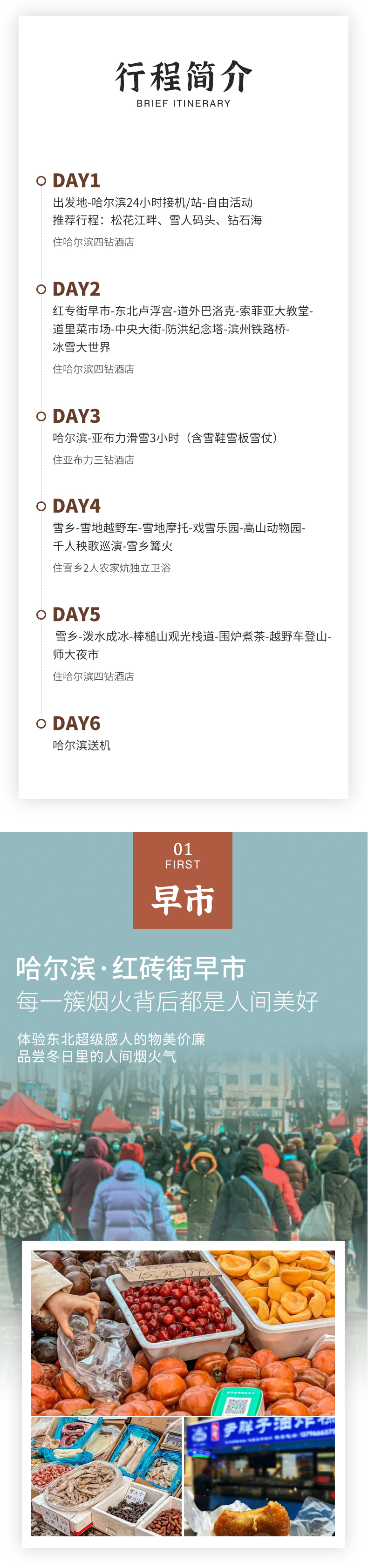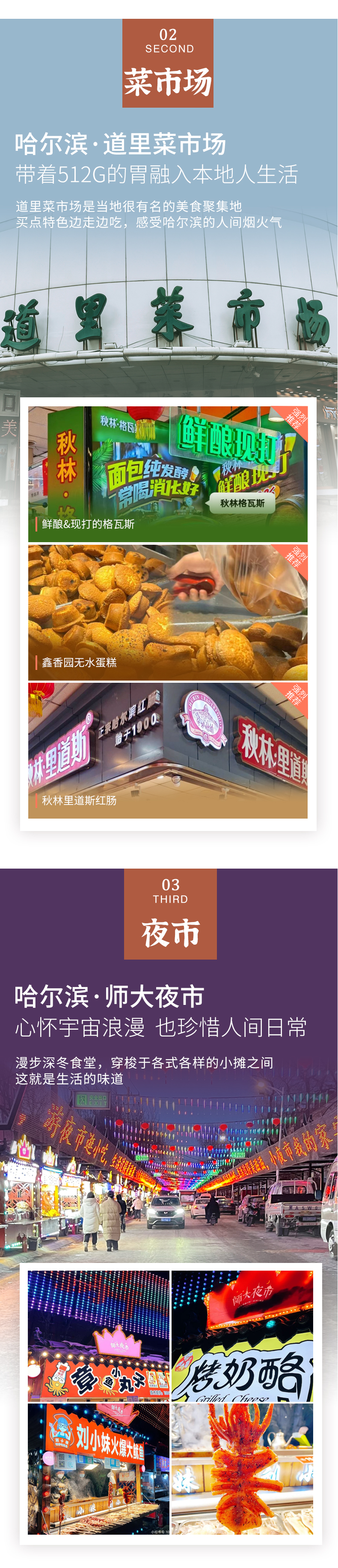 07:00 在酒店集合出发【红专街早市】,化身探店达人,体验东北超级感人的物美价廉。品尝冬日里的人间烟火气。
