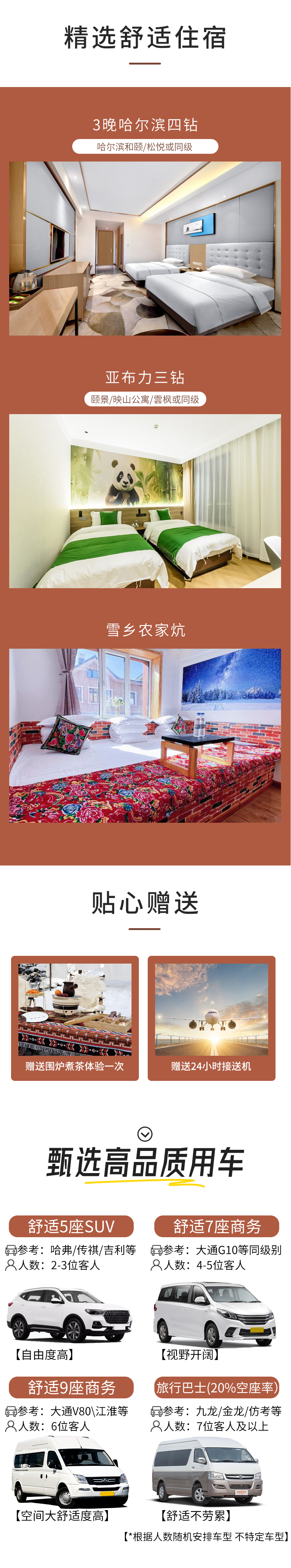 5、赠送雪乡雪地蹦野迪(如遇景区原因或大风等天气原因不举办不退费用)。