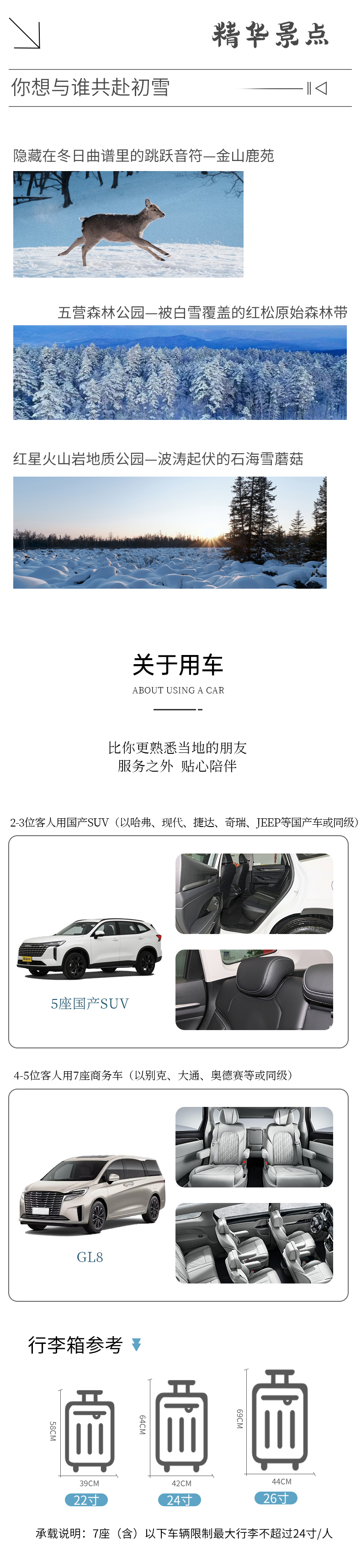 tips:用车仅以客人人数为标准,不包含司机、领队。