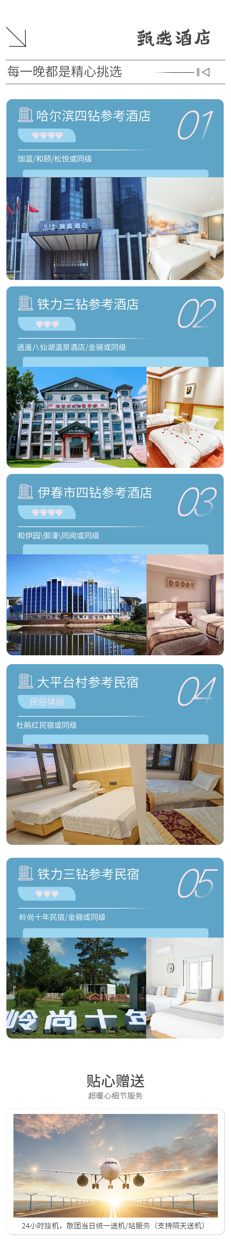 备注:钻级标准参考携程钻级标准,东北经济发展较差,酒店已经是我们精心挑选的,但是和大城市同级别酒店相比各方面略差一些,敬请您谅解;