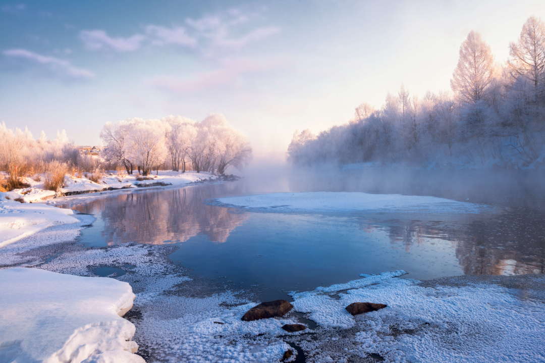 14:30 乘车前往库尔滨奇观之乡-红星大平台,入住位于伊春市和黑河逊克县交界的【大平台村】,村旁的库尔滨河上游有座水库,水库的水电站每天发电都要释放摄氏零度以上的水,所以库尔滨河常年不冻,形成了浓浓的雾气,水雾和冷空气交锋融合后,便形成了壮观的仿若童话世界的雾凇奇景。