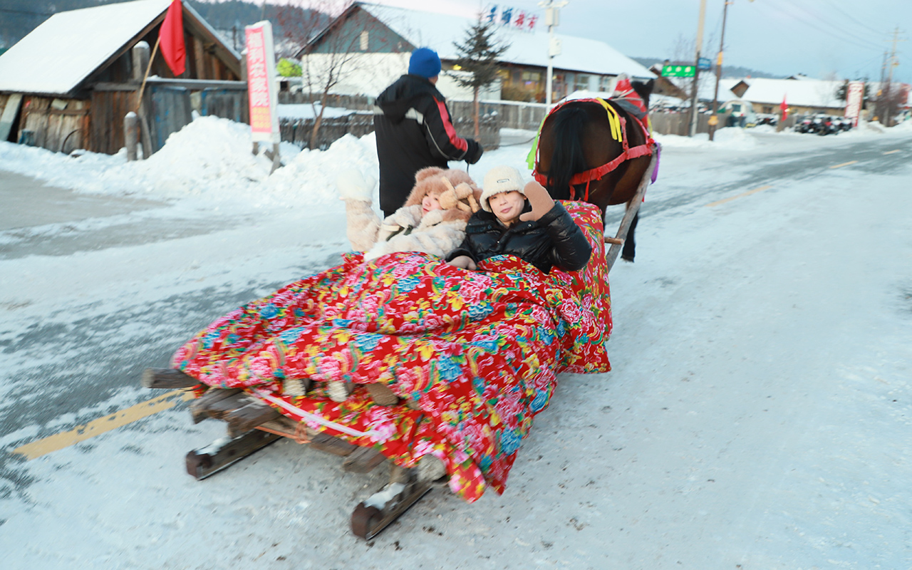 3、体验东北最古老的交通工具马拉爬犁(2-3人一个爬犁)。