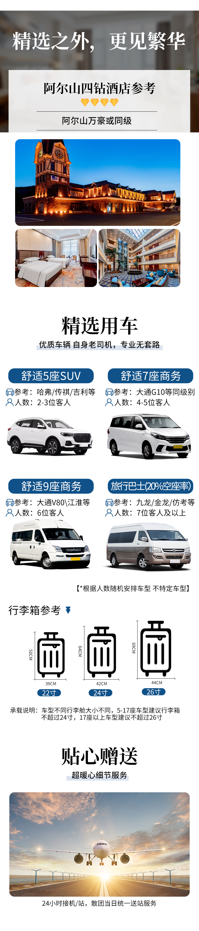 4、赠送24小时接飞机或火车服务(支持隔天送机)。