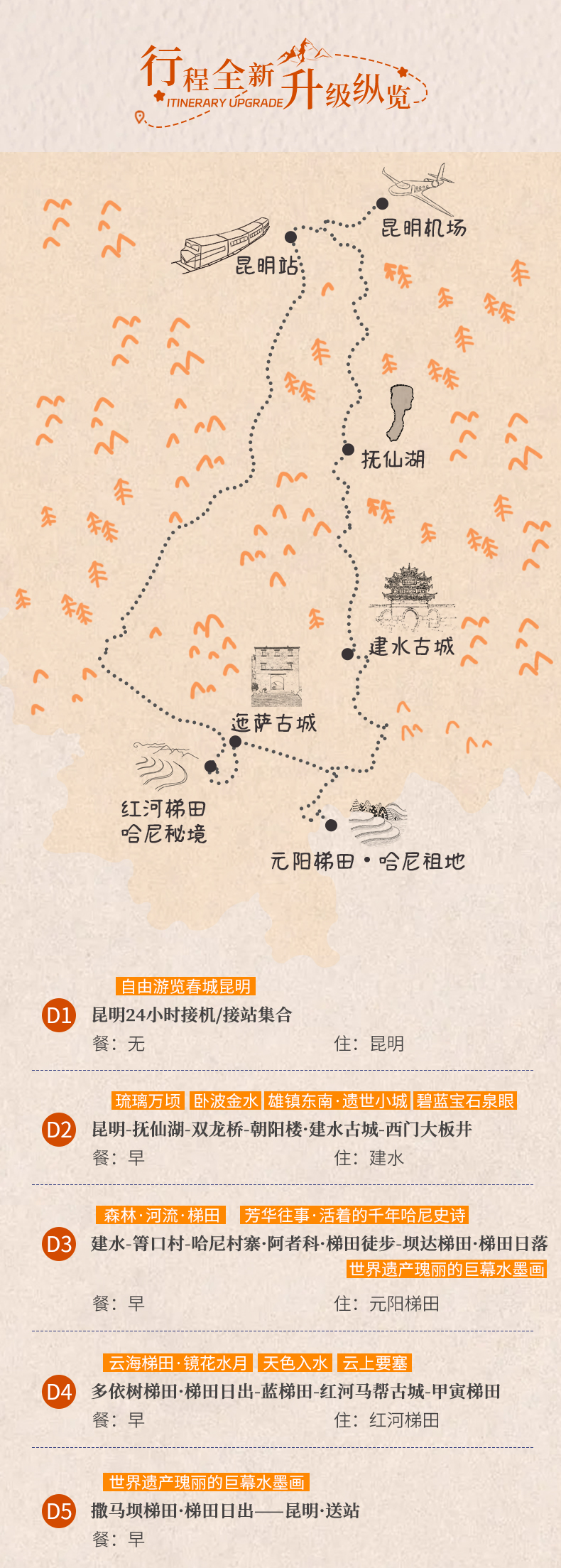 红河-撒马坝梯田·日出-昆明送站,(约300KM,车程约5.5小时)