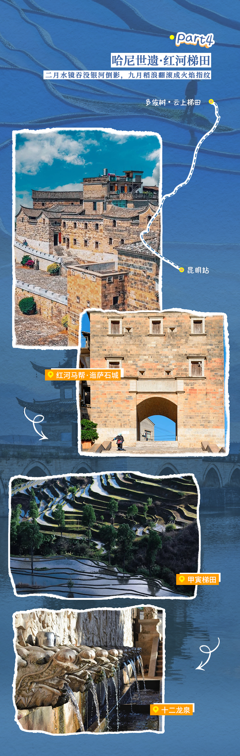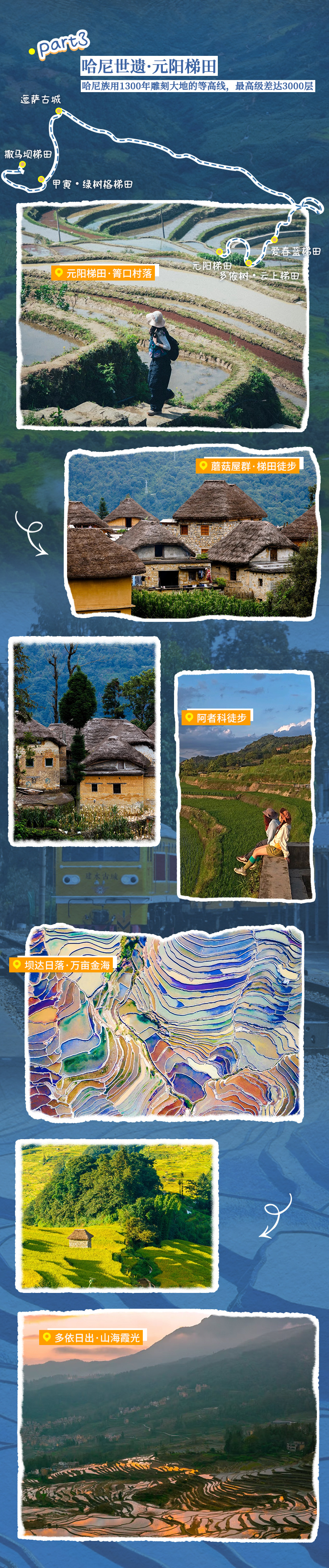 元阳-多依树梯田·日出-蓝梯田-马帮古城-甲寅梯田,(约183KM,车程约5小时)