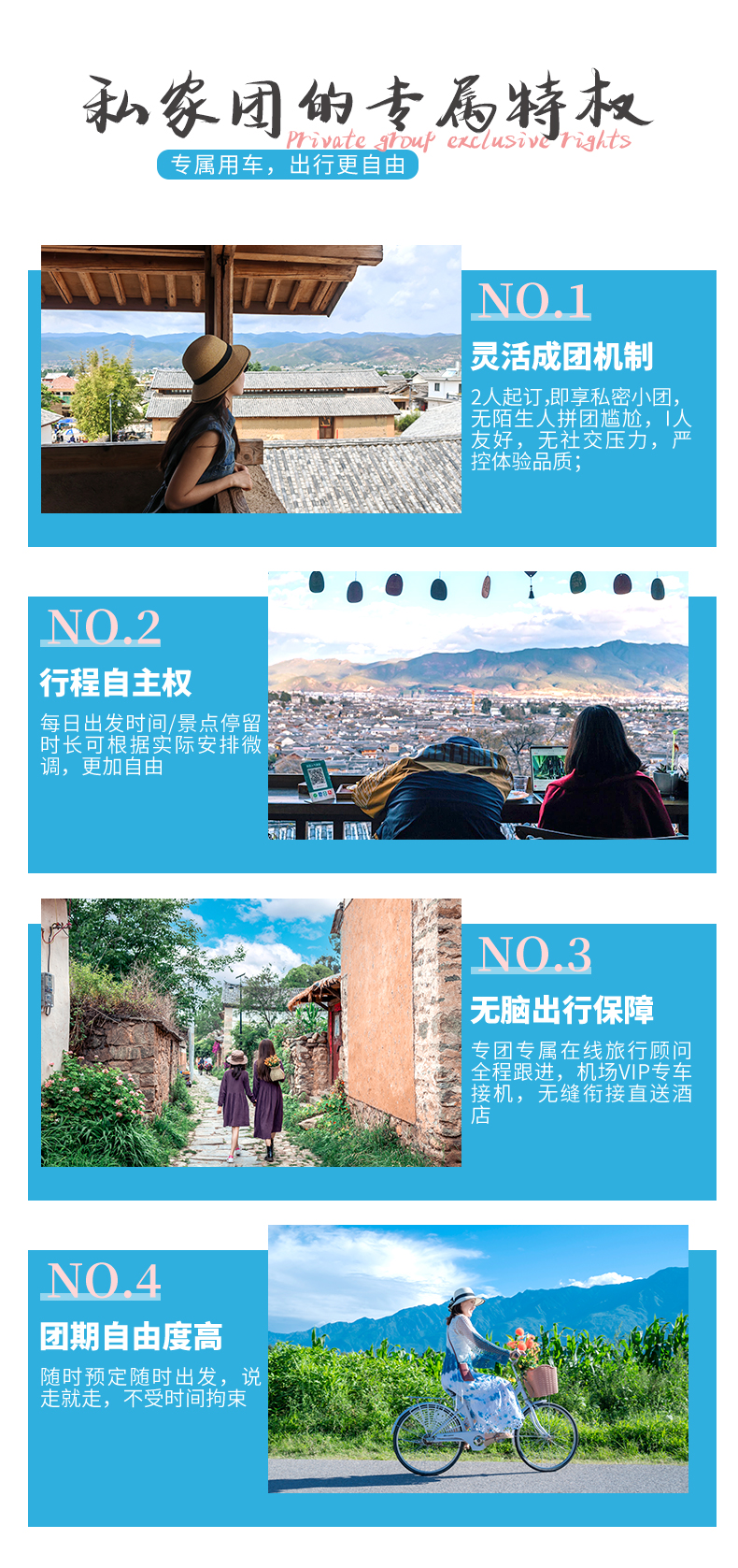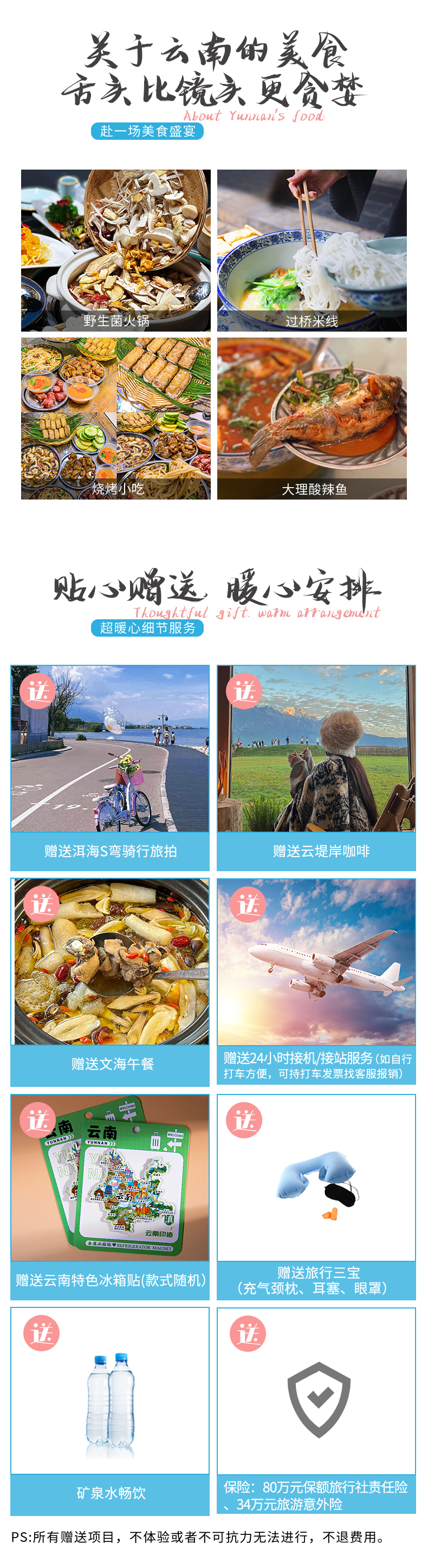 4、若大索道出票时间在下午时段,上午行程将前往蓝月谷的游玩,如旅游旺季由于景区人流量较大导致排队等待时间较长,敬请谅解,保持平常心对待。