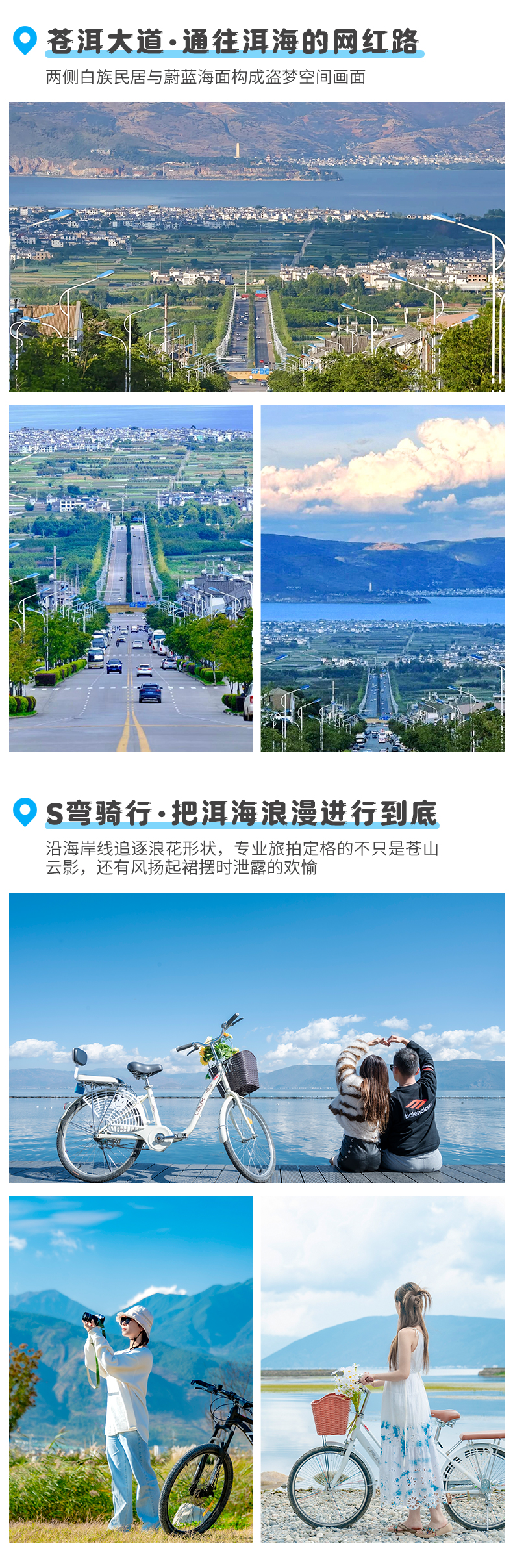 大理--洱海s弯骑行旅拍-环洱海-喜洲-周城非遗白族扎染-双廊-小普陀-海东环海路-理想邦-苍洱大道-大理古城(约120KM,车程约3小时)