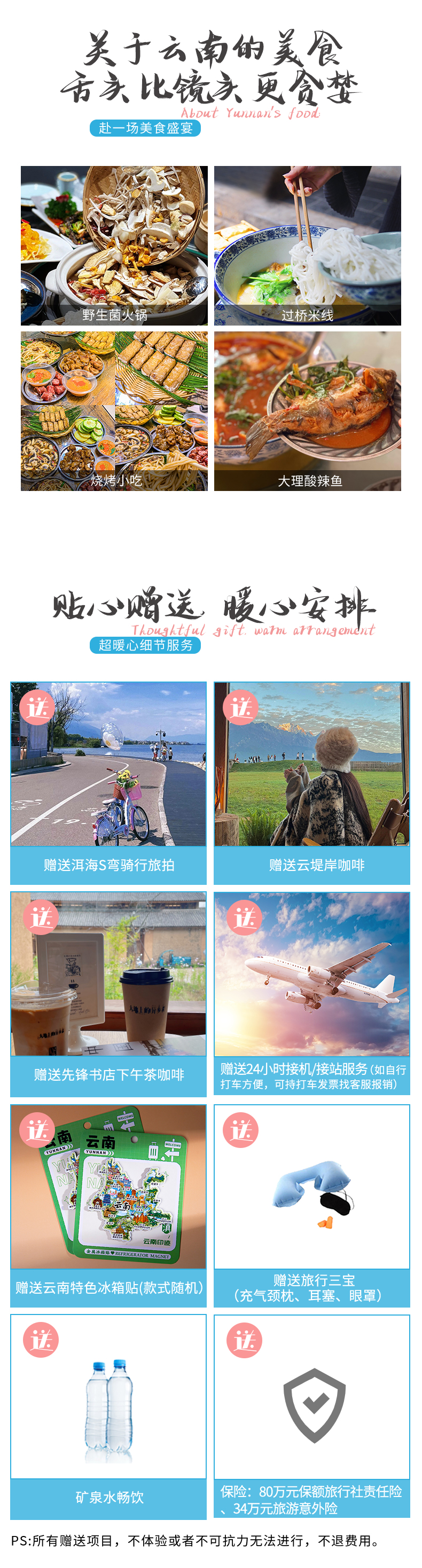 8、保险:80万元保额旅行社责任险、34万元旅游意外险。