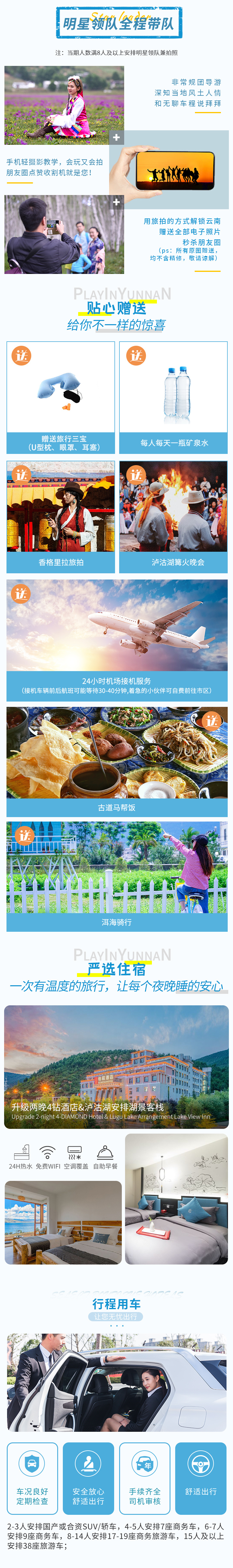 1、住宿:昆明1晚(参考酒店:龚禧里酒店或昆明喆啡酒店或明都酒店或南疆宾馆或同等级酒店或同级)、大理1晚(参考酒店:础云酒店或云悦楠舍或大理古城玉洱路静芝院客栈或大理松梅源酒店或同等级)、香格里拉1晚(参考酒店:怡程酒店或香格里拉月光国际大酒店或香格里拉巴拉格宗大酒店或私悦酒店或同级)、丽江2晚(参考酒店:丽江璟瑞酒店或丽江凯斯酒店或丽呈别院·盛铂或文汇雪山观景酒店或同等级)、泸沽湖1晚(参考酒店:泸沽湖清枫别院或泸沽湖泸沽庄园酒店或泸沽湖清尘智能美宿或同等级);