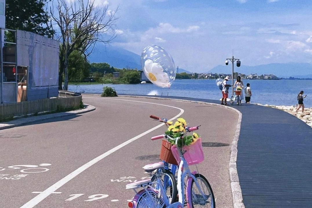 15:30 去离洱海最近的地方【潘溪村】,这是洱海最初名的【网红S弯】,紧邻洱海边上,视野开阔,风景尤为漂亮。网红S弯的西边则是磻溪村的一些白色房屋建筑,海边上有几株古树,这一切都是那么和谐而自然。我们在这里【赠送洱海骑行】,可以沿着水边的生态廊道一路骑行,打卡网红景点,拍美照。