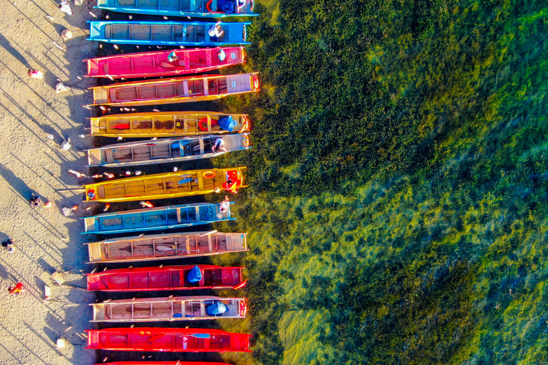 10:00 抵达泸沽湖边,在能见度达12米的清澈湖面上乘坐【猪槽船登岛】,这种小船曾是泸沽湖沿岸居民互相往来的交通工具,我们乘船游览泸沽湖,冬季还可以喂海口哦,