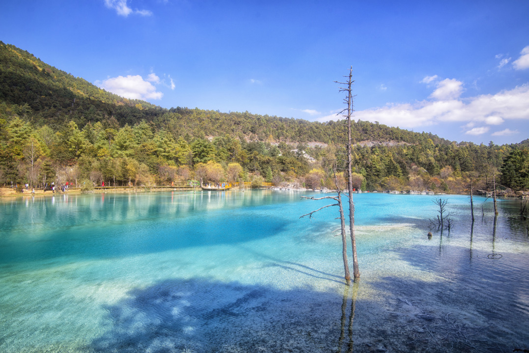 15:00前往【蓝月谷】,早前人们所熟知的(白水河)、蓝月谷又名白水河,在晴天时,水的颜色是蓝色的,而且山谷呈月牙形,远看就象一轮蓝色的月亮镶嵌在玉龙雪山脚下,所以名叫蓝月谷、而白水河这个名字是因为湖底的泥巴是白色的,下雨时水会变成白色,所以又叫自水河。蓝月谷景区可乘坐电瓶车或者徒步(电瓶车50元/人需自理,不属于必乘交通,不含在行程费用包含中,请自行决定是否乘坐)