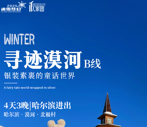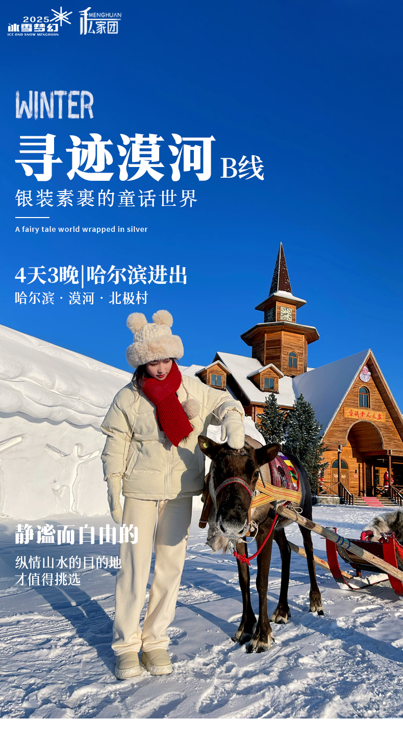 漠河接站-滑雪(滑雪2小时)-圣诞村-北极村(最北邮局-最北哨所-最北广场),住北极村(120KM,车程约2.5小时)