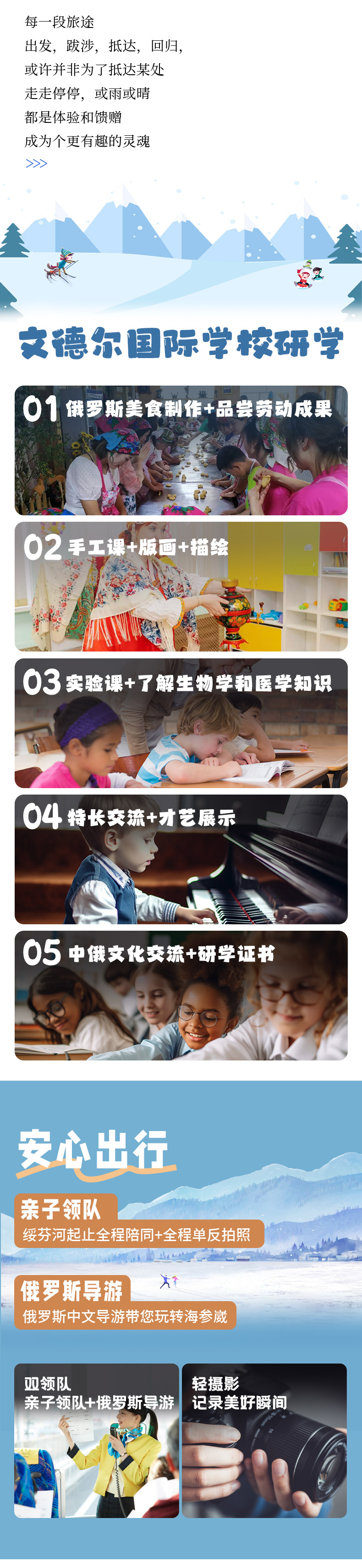 文德尔国际学校研学(俄罗斯美食制作+品尝劳动成果、手工课+版画+描绘、实验课+了解生物学和医学知识、特长交流+才艺展示、中俄文化交流+研学证书)