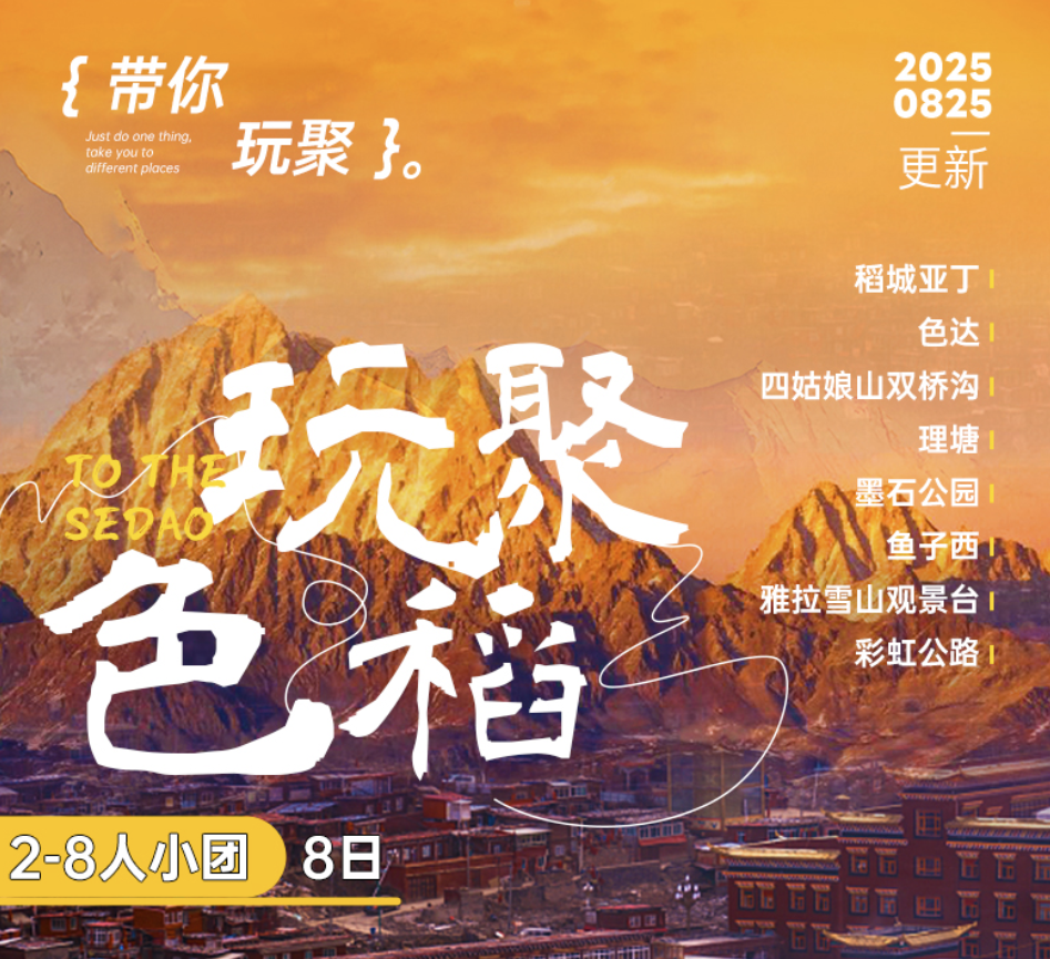 玩聚色稻 | 稻城亚丁.色达.彩虹公路.鱼子西.理塘勒通古镇海子山.兔儿山.四姑娘山双桥沟.雅拉雪山观景台.墨石公园 2-8人VIP小团8日