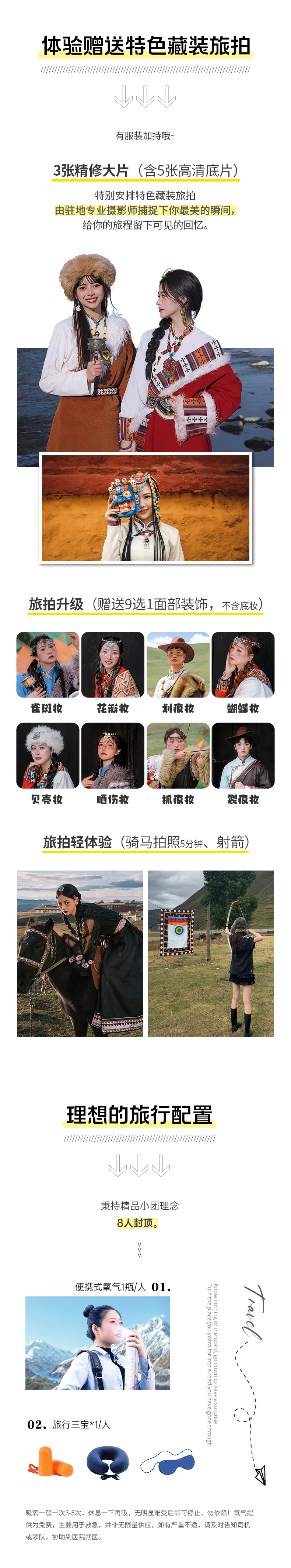 包含体验特色藏装旅拍(3张精修照片含5张高清底片),面部装饰9选1,不含底妆(升级骑马旅拍体验5分钟,射箭体验)