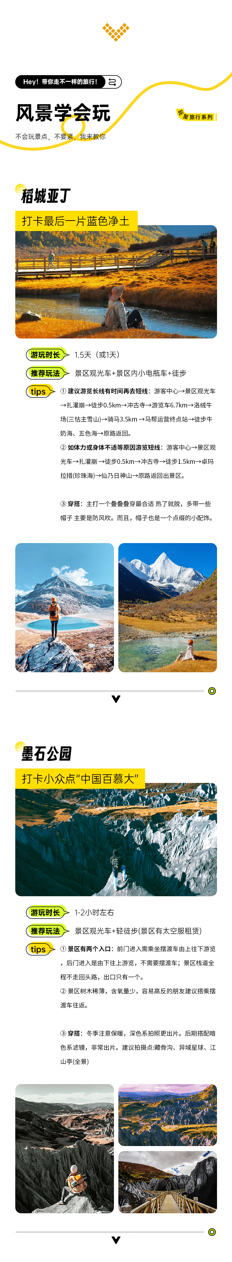 包含四姑娘山双桥沟门票、墨石公园门票、理塘勒通古镇套票(包含博物馆+讲解+观光车)、亚丁景区门票