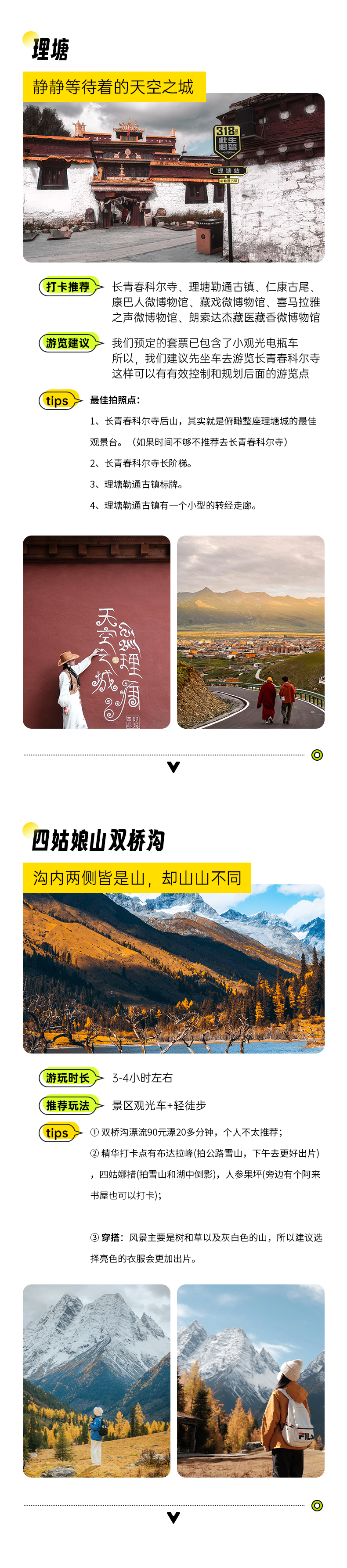 因四姑娘山(双桥沟景区)节假日期间景区门票有限流要求,为保障游客顺利游玩四姑娘山景区,所以如遇限流等问题,会安排长坪沟或海子沟游玩,不留遗憾。