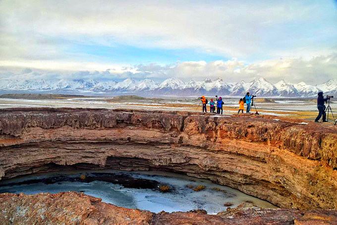 之后抵达白沙湖,白沙湖是慕士塔格峰冰川雪水流经布伦口形成的湖泊,因湖面西侧的山上有白沙而得名。冬日的白沙湖呈现出别样美景。未结冰的湖面在微风轻拂后,泛起涟漪,而已经结冰的湖面像是将白云拓印在了冰面,构成了一幅美丽的画卷。首先我们抵达白沙湖北岸,这里人少景色开阔,有属于你的专属机位。之后抵达白沙湖南岸,继续创作。