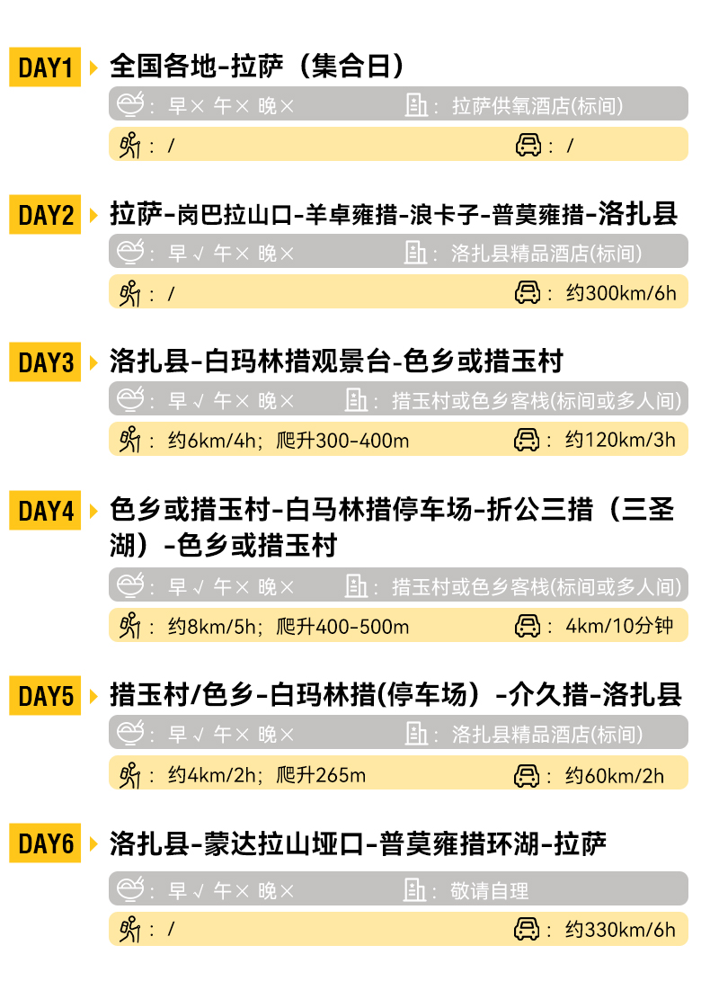 4.涉及高原地区,由于当地医疗条件有限,每个人都是自己健康的第一责任人,请在出行前确认近期健康状况。