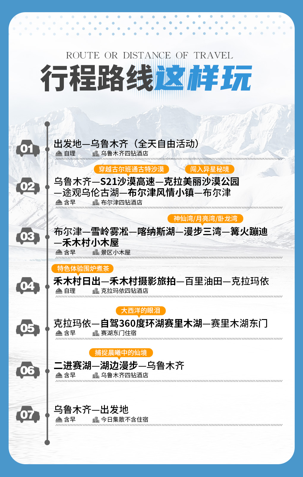 乌鲁木齐-S21沙漠高速-克拉美丽沙漠公园-途观乌伦古湖-布尔津风情小镇-布尔津【四钻】