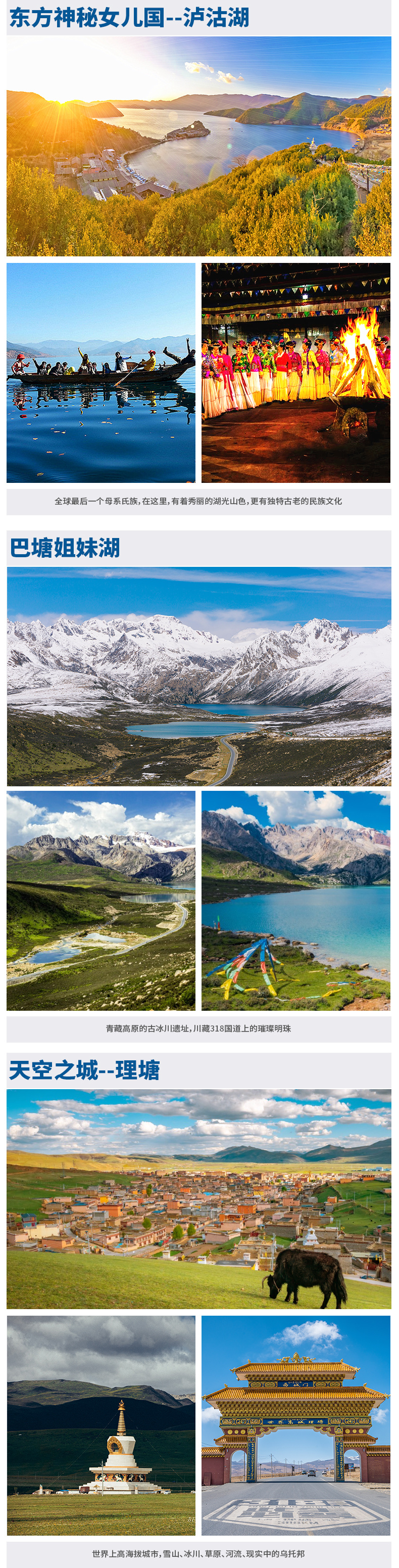 2、住宿:全程6晚优选当地酒店(丽江1晚四钻高档型酒店,德钦1晚舒适型酒店,巴塘1晚舒适型酒店,稻城亚丁2晚四钻高档型酒店,泸沽湖1晚舒适型酒店);