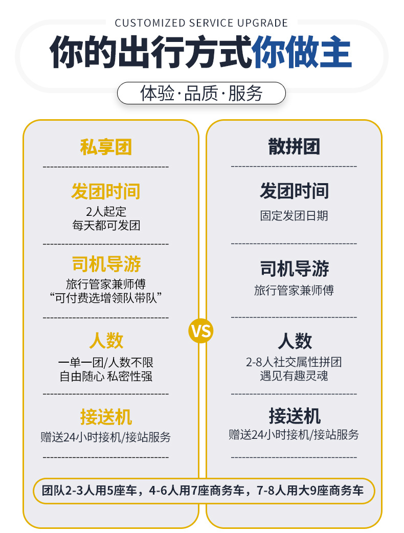 ● 本活动行程实际出行中,在征得客人同意的前提下,领队可能会根据天气、交通等情况,对行程进行适当调整(如调整景点游览顺序、变更集合时间等),以确保行程顺利进行。